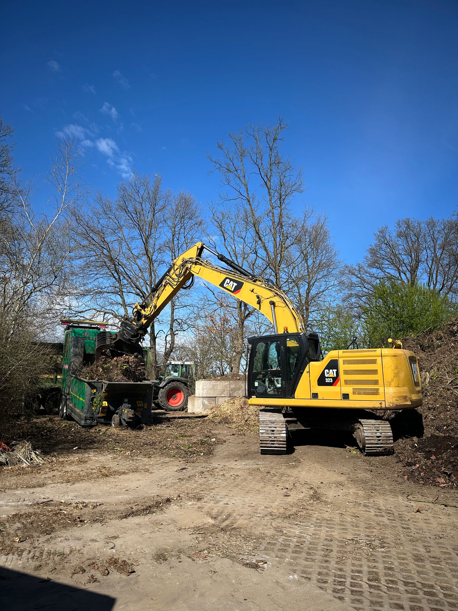 Für das Aufarbeiten von Strauchschnitt, Grünabfällen und Baumwurzeln steht uns ein Biomasseschredder Jenz BA mit passender Verladetechnik zur Verfügung, einsetzbar mit Bagger oder Radlader.